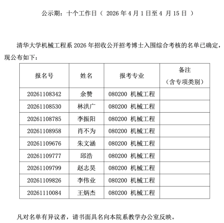 以上是关于【2026年清华机械工程系招收公开招考博士(含硕博连读生)研究生综合考核名单公示】的内容,希望能帮助准备考研清北的同学们节约时间,提高上岸的成功率。