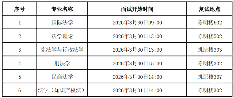 请通过初审进入复试的考生,于2026年3月29日下午14:00——16:00到法学院模拟法庭进行资格审查。