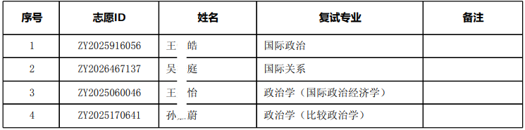 以上是关于【2026年北大国际关系学院港澳台学生攻读博士学位复试名单】的内容,希望能帮助准备考研清北的同学们节约时间,提高上岸的成功率。