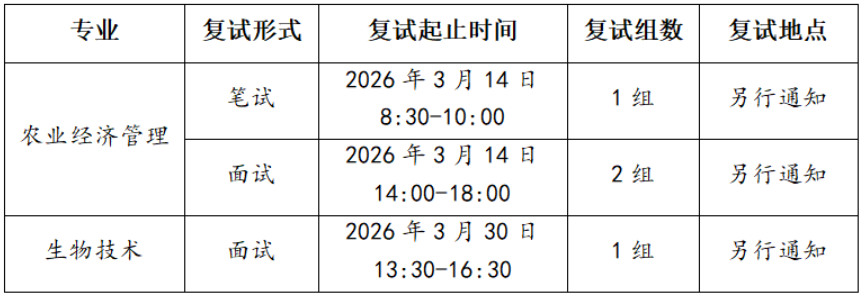 农业经济管理专业笔试和面试均采用百分制计分,60分及格。笔试、面试成绩各占复试成绩的50%,笔试或面试任意一项不及格不予录取。复试成绩及格考生能否录取根据复试成绩名次择优录取。