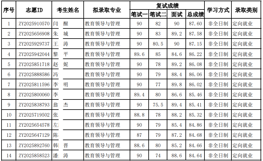 经北京大学研究生院审核批准,现将教育学院2026年非全日制博士招生拟录取名单进行公示。公示期为自发布之日起的七日。