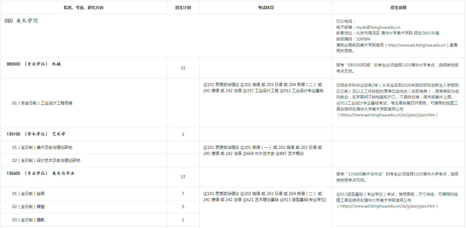 以上是关于【2026年清华美术学院考研招生专业目录】的内容,希望能帮助准备考研清北的同学们节约时间,提高上岸的成功率。