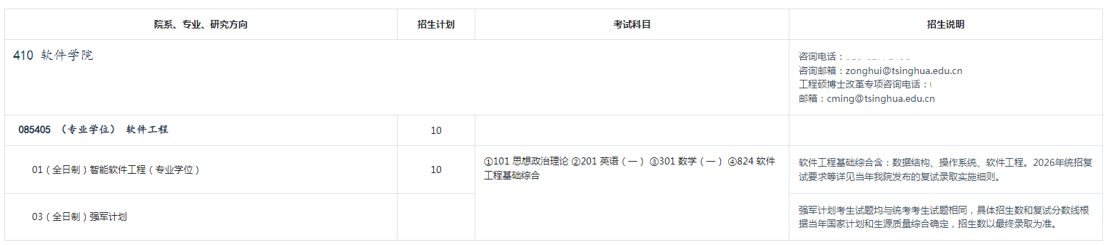以上是关于【2026年清华软件学院考研招生专业目录】的内容,希望能帮助准备考研清北的同学们节约时间,提高上岸的成功率。