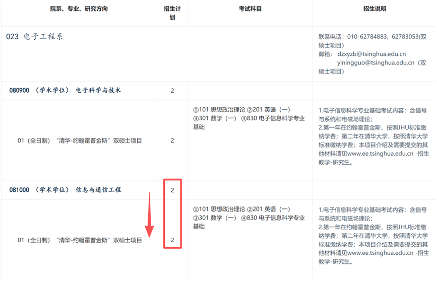 (2)电子信息专业学位招生人数增加4人