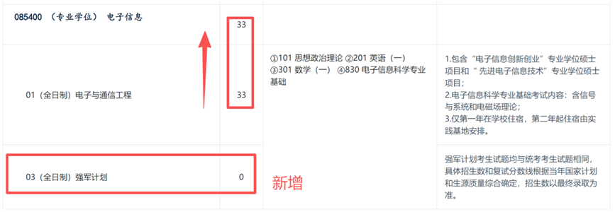 (1)电子信息专硕新增03(全日制)强军计划方向