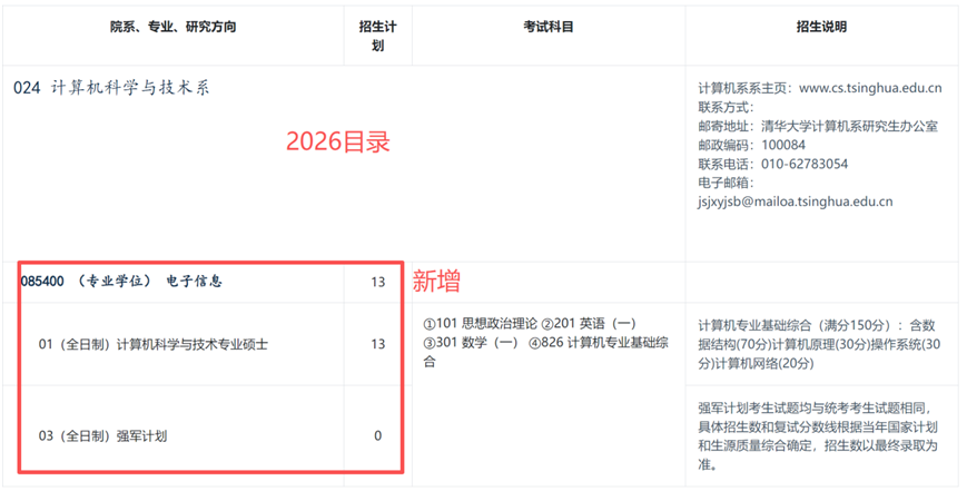重大变革!2026清华计算机系考研招生目录变化与解读