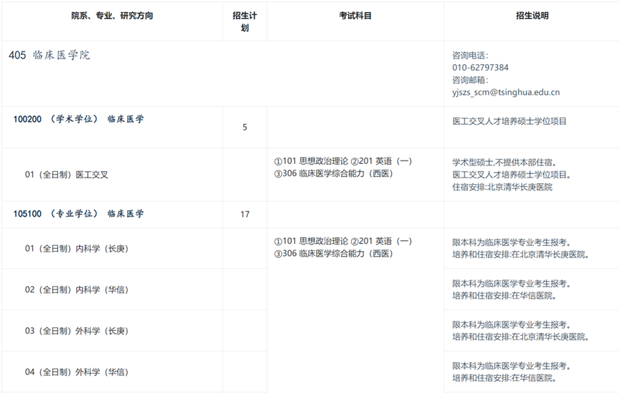 院系与招生专业:临床医学院(代码:405)为2026年新增的招生院系。该院系同时招收学术学位硕士(100200 临床医学) 与专业学位硕士(105100 临床医学)。