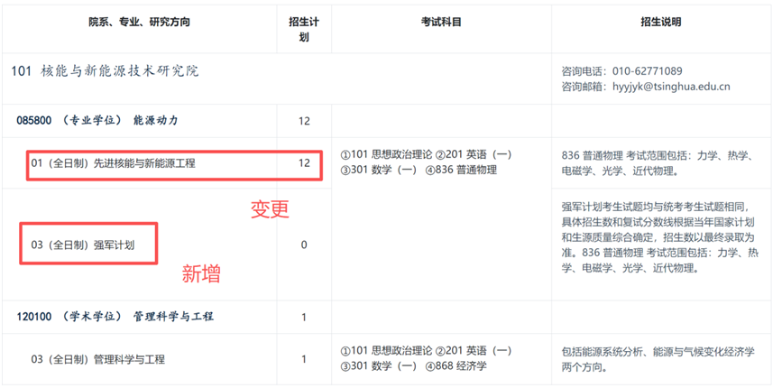 根据清华大学2026年最新招生目录,对比往年招生目录情况,盛世清北整理得出,核能与新能源技术研究院在硕士招生培养结构上进行了重大调整,具体变化如下: