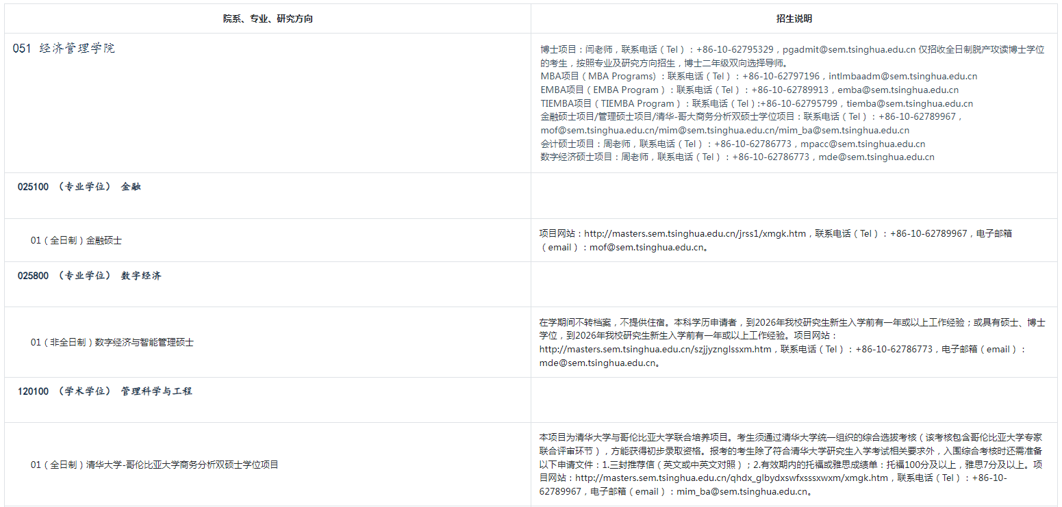 以上是关于【2026年清华经济管理学院招收港澳台地区硕士研究生专业目录】的内容,希望能帮助准备考研清北的同学们节约时间,提高上岸的成功率。