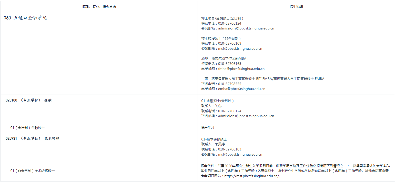 以上是关于【2026年清华五道口金融学院招收港澳台地区硕士研究生专业目录】的内容,希望能帮助准备考研清北的同学们节约时间,提高上岸的成功率。