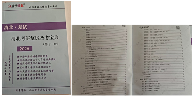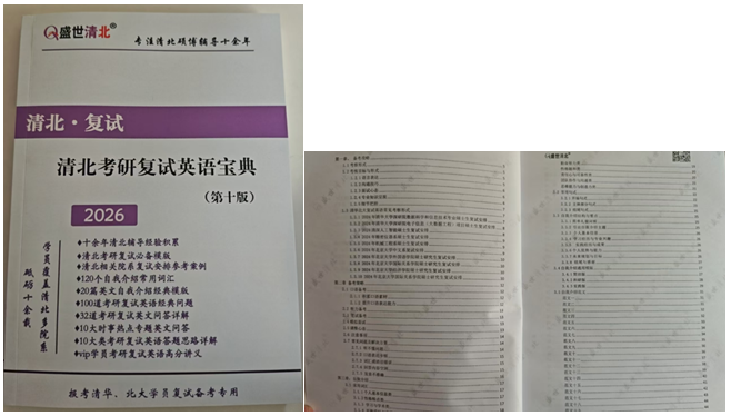 因为清华法律(非法学)考研复试的准备时间很短,为了节省时间成本,不少友友们使用的《清北考研复试红宝书》和《清北考研复试备考宝典》,这两本资料里信息挺全的,除了有清北面试常见问题分类、考研复试经典问答、考研复试备考攻略、自我介绍范文等,还有几十位上岸学长点评分享及实施热点专题问答,确实节省了不少查找资料的时间;英语面试用的资料是《清北考研复试英语宝典》,里面有清北复试英语常见考察形式、20篇英文自我介绍景丹模版、常见问题及解决方案,还有120个自我介绍常用词汇及10大类考研英语复试答题思路详解,以及自我介绍范文等,不少人用后都说这几本资料很实用。