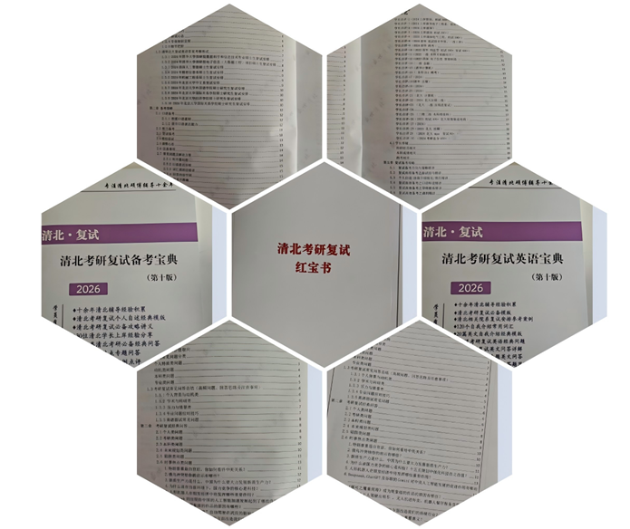 《清北考研复试红宝书》和《清北考研复试备考宝典》,这两本资料里信息挺全的,系统整合复试全流程要点、个人自述经典模板、复试必备攻略讲义、六大类清北考研必备经典问答及大量上岸学员的真实经验,助力考生快速构建备考框架,大幅提升信息整合效率。