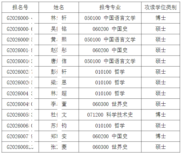 清华大学人文学院2026年招收港澳台地区研究生入围综合考核的名单已确定,现公布如下: