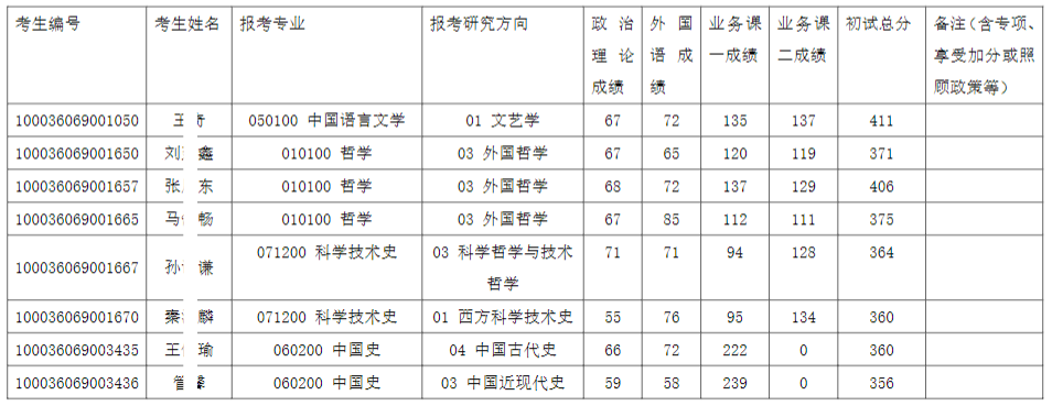 清华大学人文学院2026年全国硕士研究生招生考试入围复试的名单已确定,现公布如下: