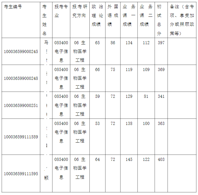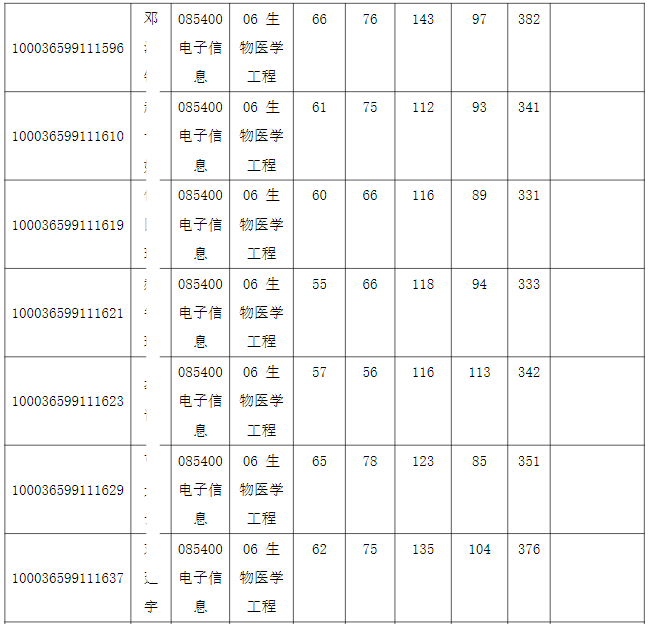 清华大学深圳国际研究生院2026年全国硕士研究生招生考试电子信息(生物医学工程)入围复试的名单已确定,现公布如下: