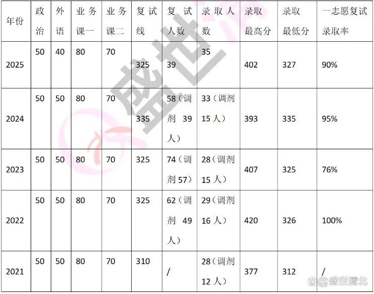 根据近5年分数线及复试情况,盛世清北老师分析如下: