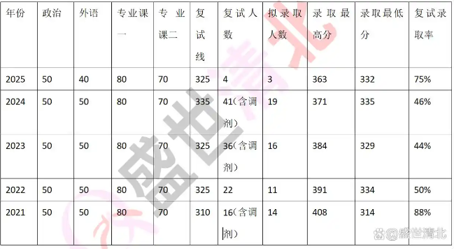 近五年来,该专业各科目分数线呈现出相对稳定的态势。政治、外语、专业课一和专业课二的分数线分别维持在 50、50 - 40(这里2025外语为40,之前为50可视为特殊波动)、80、70 分左右。这种稳定意味着考生在备考各科目时,有较为明确的分数目标可以参照。然而,总分数线却存在一定波动,尤其是 2024 年分数线达到了最高的 335 分。这一现象表明,考试的难度在逐步增加,对考生综合能力的考察更为严格。在这种情况下,专业课的复习就显得尤为重要。考生需要尽早开始专业课的复习,制定科学合理的复习计划,避免走弯路,以确保在专业课上取得理想的成绩。