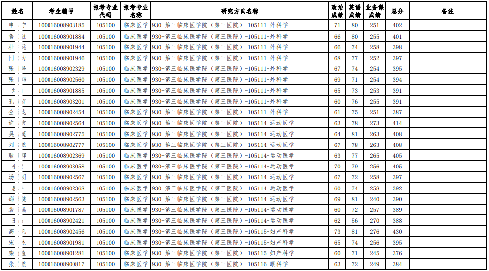 以上是关于【2026年北大第三临床医学院(第三医院)考研复试名单】的内容,希望能帮助准备考研清北的同学们节约时间,提高上岸的成功率。