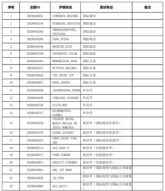 以上是关于【2026年北大国际关系学院留学生申请攻读硕士学位复试名单】的内容,希望能帮助准备考研清北的同学们节约时间,提高上岸的成功率。