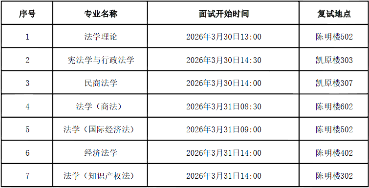 (2)面试时间:2026年3月30日下午至31日按专业进行面试。具体的面试时间和地点。