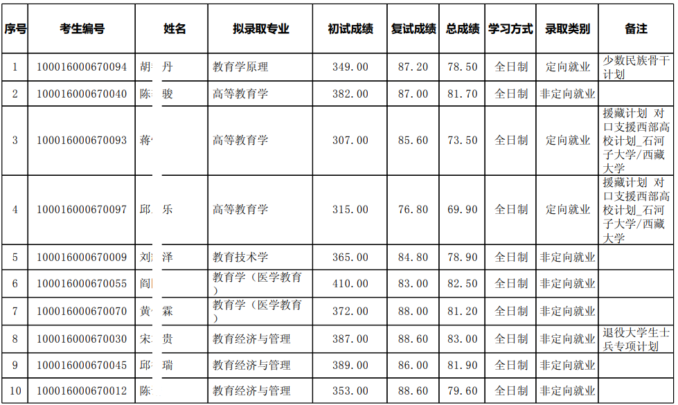 经北京大学研究生院审核批准,北京大学教育学院研究生招生拟录取名单(硕士统考生)公示。名单自即日起公示7日。