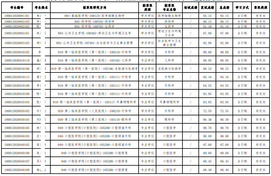 经审核,现对北京大学医学部2026年硕士研究生招生拟录取名单进行公示(港澳台学生)。