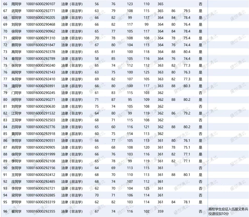 法律(非法学):361分压线入围,361分上岸
