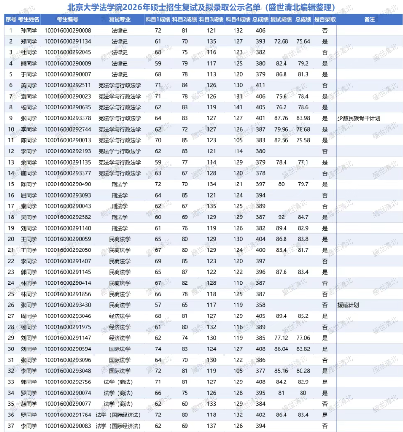 注:以上数据基于北京大学法学院官方公布名单整理,由盛世清北团队进行简要点评,如有疏漏之处,敬请指出,仅供参考。