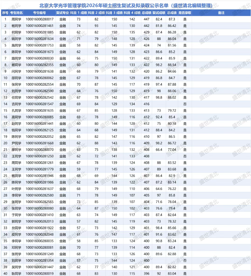2026年北大光华管理学院考研复试录取名单简析