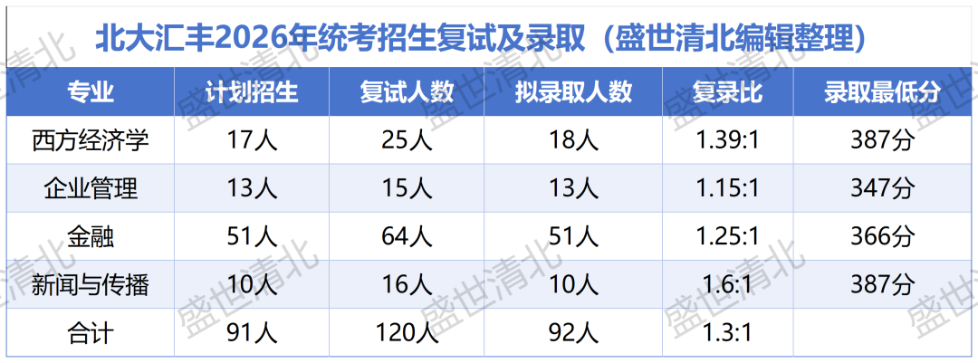 以上分析仅基于北京大学汇丰商学院2026年的复试及录取数据,仅供参考。考研形势每年都在变化,招生计划、复试分数线、复录比等均可能发生较大波动。2027考生务必以当年官方发布的最新通知为准,不可盲目套用往年数据。