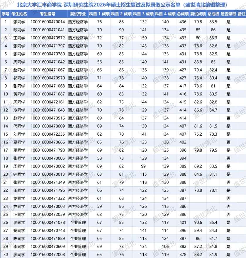 2026年北大汇丰商学院(深圳研究生院)考研复试录取名单简析