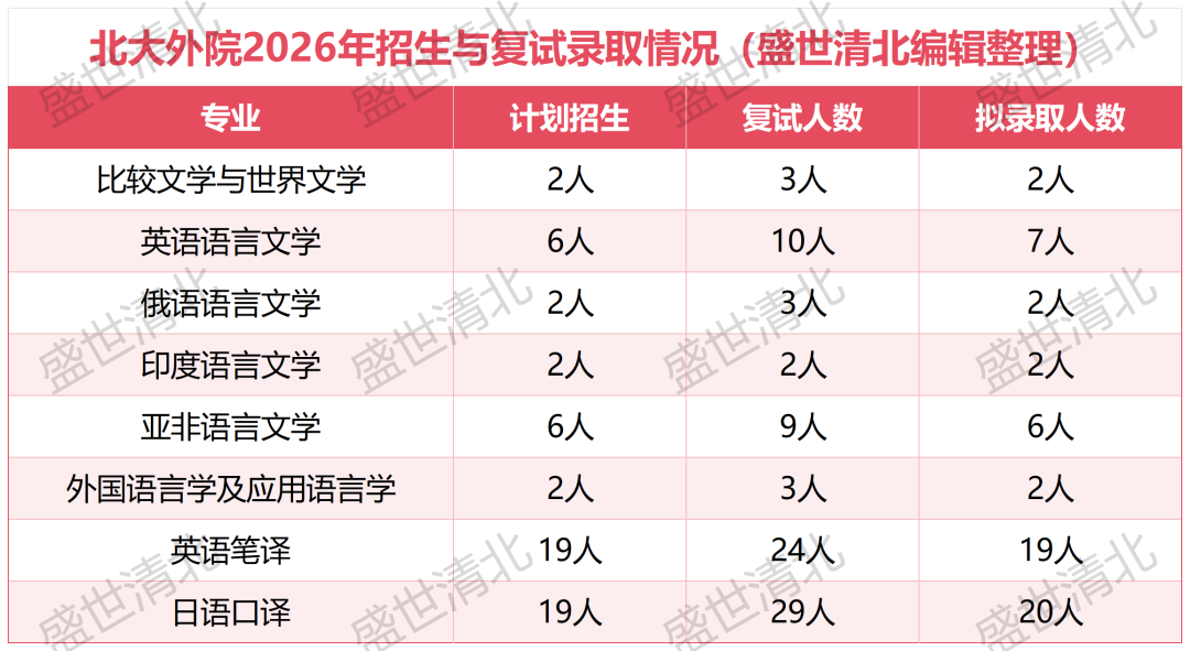 注:以上数据基于北京大学外国语学院官方公布名单整理,由盛世清北团队进行简要点评,如有疏漏之处,敬请指出,仅供参考。