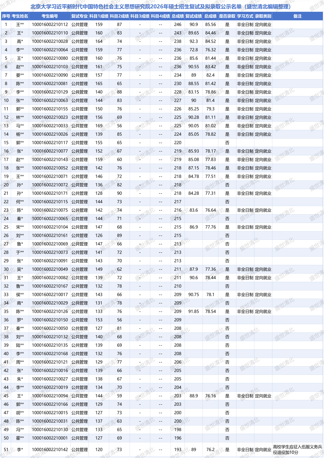 北京大学习研院2026年硕士招生复试及拟录取名单已公布。公共管理专业193分(含退役士兵加分)考生压线入围并成功上岸,而218分、215分等多名考生遗憾落榜。51人复试争夺27个录取名额,复试权重40%成为决定成败的关键变量。