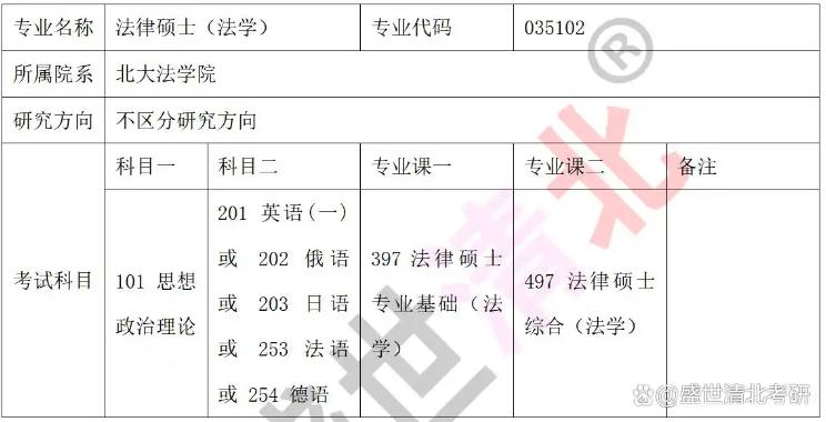 北大法律硕士(法学)专业(代码:035102)由北大法学院开设,不区分具体研究方向,旨在通过系统化培养夯实学生的法学理论基础与实务能力。考试科目分为四门,总分500分,具体安排如下: