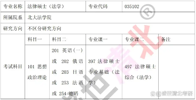 北大法律硕士(法学)专业(代码:035102)由北大法学院开设,不区分具体研究方向,旨在通过系统化培养夯实学生的法学理论基础与实务能力。考试科目分为四门,总分500分,具体安排如下: