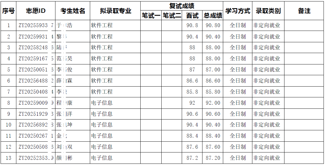 2026年软件与微电子学院招收的软件工程工学博士研究生“申请-考核制” 和电子信息博士专业学位研究生(全日制)“申请-考核制”拟录取名单现在开始公示。