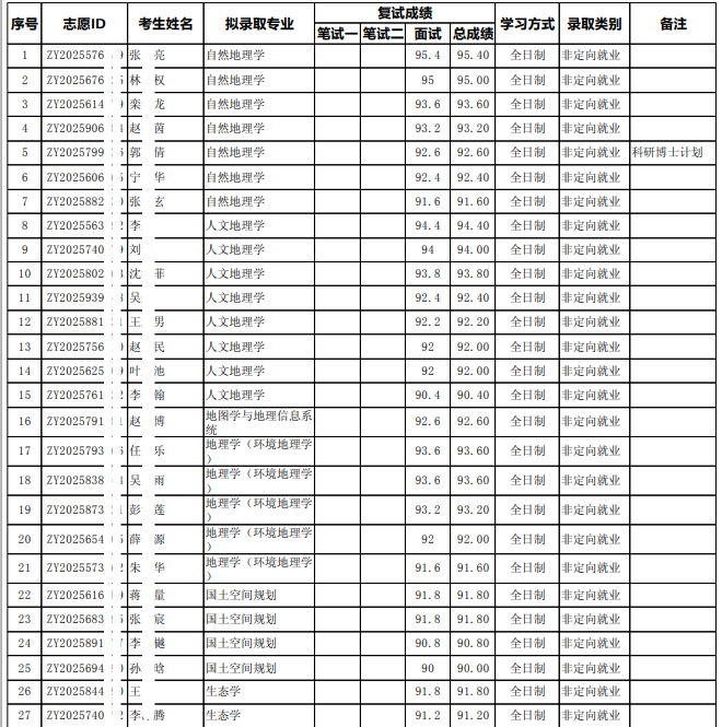 经北京大学研究生院审核批准,现公布城市与环境学院2026年博士研究生招生拟录取名单。