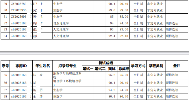 注:本次公示包含校本部硕博连读、申请-考核制普通考生和硕博连读港澳台考生,不含深圳研究生院、建筑与景观设计学院、申请-考核制港澳台、留学生、申请-考核制专项计划考生。