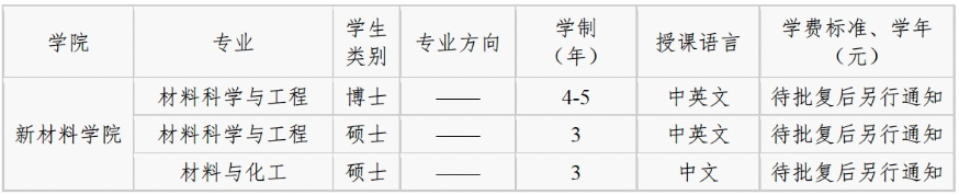 北京大学深圳研究生院新材料学院2026年采用“申请-考核”选拔方式招收外国留学生(以下简称留学生)攻读硕士、博士学位。详情参考北京大学深圳研究生院2026年面向外国留学生招收硕士研究生、博士研究生招生说明 - 招生信息 - 留学生招生 - 北京大学深圳研究生院。