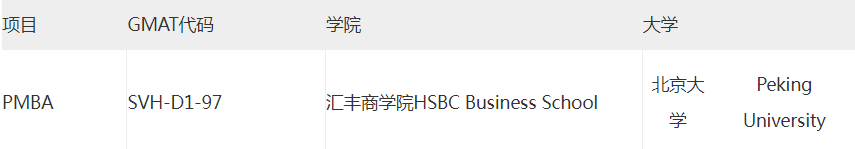注:持有GMAT、GRE成绩的考生,请向考试机构申请按如下代码将成绩单发送至汇丰商学院。持有其他外语证明的考生,请将证明复印件邮寄至学院。