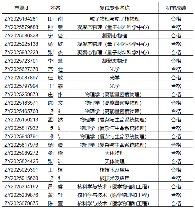 北京大学物理学院2026年申请考核制研究生招生初审工作已经顺利结束,经北京大学研究生院审批,现公布此次申请考核制研究生招生的复试名单。