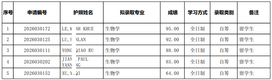 生命科学学院2026年留学生攻读博士学位拟录取名单现在开始公示,公示时间为7日。如有异议请联系:gsmjwb@pku.edu.cn