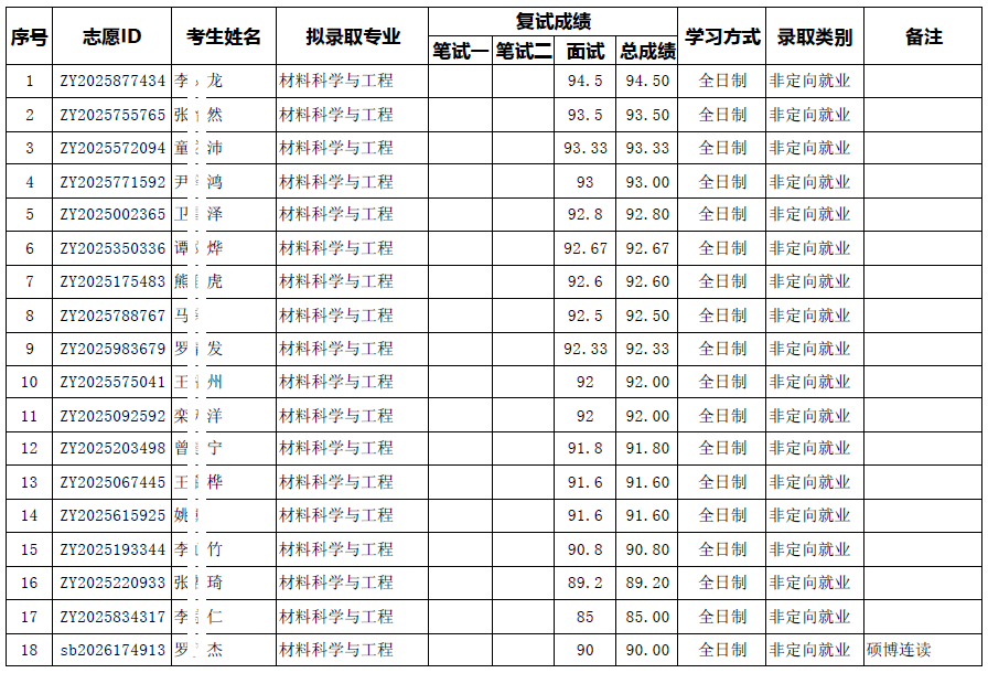 以上是关于【2026年北大材料科学与工程学院博士招生拟录取名单公示(学术型)】的内容,希望能帮助准备考研清北的同学们节约时间,提高上岸的成功率。