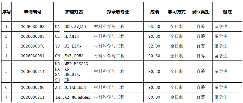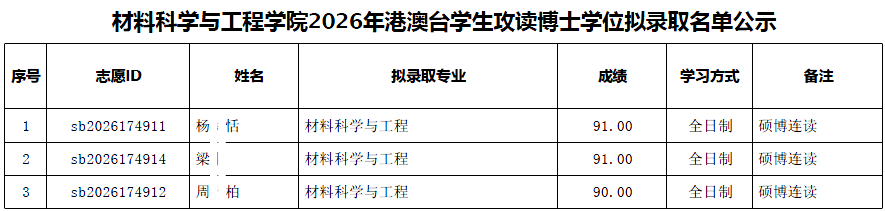经北京大学研究生院审核通过,材料科学与工程学院2026年博士招生拟录取名单(学术型,不含专项计划),特此公示。