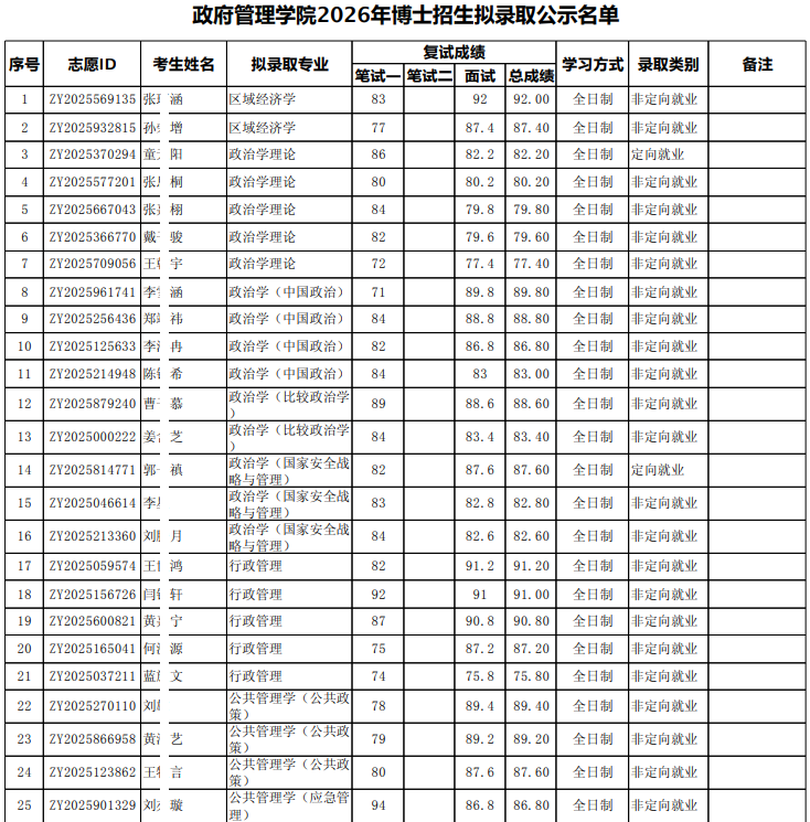 以上是关于【2026年北大政府管理学院博士招生拟录取公示名单】的内容,希望能帮助准备考研清北的同学们节约时间,提高上岸的成功率。