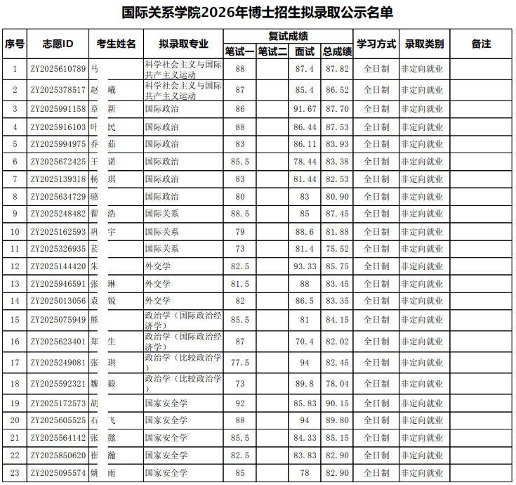 以上是关于【2026年北大国际关系学院博士研究生招生拟录取名单公示】的内容,希望能帮助准备考研清北的同学们节约时间,提高上岸的成功率。