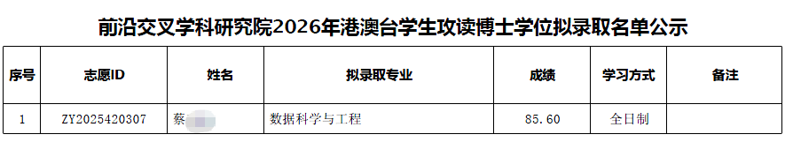 以上是关于【2026年北大前沿交叉学科研究院澳台学生攻读博士学位拟录取名单公示】的内容,希望能帮助准备考研清北的同学们节约时间,提高上岸的成功率。