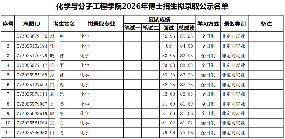 以上是关于【2026年北大化学与分子工程学院申请-考核制、留学生博士招生拟录取公示名单】的内容,希望能帮助准备考研清北的同学们节约时间,提高上岸的成功率。