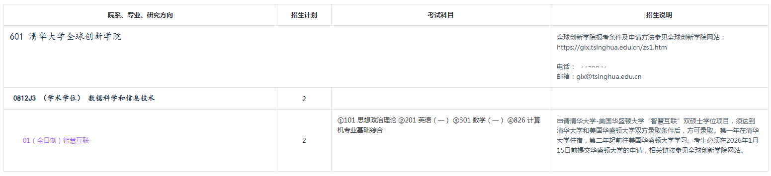 以上是关于【2026年清华全球创新学院考研招生专业目录】的内容,希望能帮助准备考研清北的同学们节约时间,提高上岸的成功率。