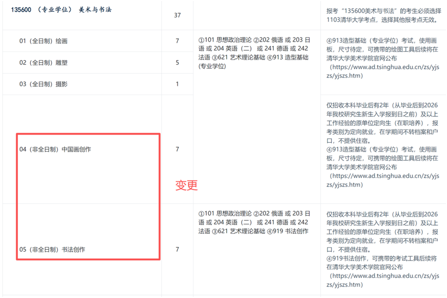 美术与书法专业硕士学位发生重要变革,原04(非全日制)中国画与书法方向拆分为04(非全日制)中国画创作和05(非全日制)书法创作两个独立方向。同时,该专业总招生人数由31人增至37人,增加6个名额。
